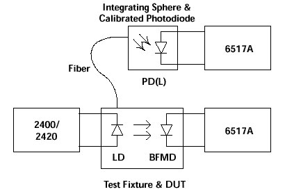 This test verifies the response of the back facet detector pho-todiode (also reverse biased) to increased light output of the LD as the drive current is increased. The typical current measurement range is 0–100mA and the required resolution is 100nA. This measurement is typically performed with a picoammeter or electrometer.