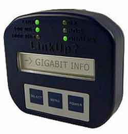 California, MD - The Smartronix LinkUp Ethernet Tester is a battery powered (battery included) Ethernet test tool that will provide the first response for troubleshooting network connectivity problems. The unit's LEDs provide instant basic connection status. The LCD display allows more detailed link analysis through the LinkUp simple menu system. Auto-negotiation capabilities can be scrolled through. Power-Over-Ethernet voltages can be read. The LinkBlink test allows the link light on hubs and switches to determine wired port numbers. A data packet loopback test can find failures in pre-run cabling by sending actual data through the cables. The LinkUp? Case is ergonomically designed for one hand operation and its small size makes storage easy. LinKUp? runs on 2 AA batteries and has an auto-power down feature to save battery life.