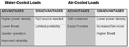 A water-cooled load will cost approximately $1.00 per watt and represents significant savings over traditional air-cooled loads that cost approximately $3.00 per watt. The water-cooled load may have additional costs associated with it if processed water is not readily available: A high-end laboratory grade water chiller can add $1.50 per watt. However, since most applications do not require an elaborate water chiller, this cost can be greatly reduced. Costs as low as $0.15 per watt can be achieved if the proper research of chiller manufacturers is explored.